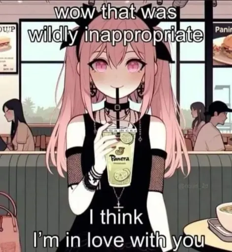 minus-squarerovingnothing29@lemmy.worldlinkfedilinkEnglisharrow-up10·8 days agoI found this on saucenao https://www.deviantart.com/artificialsweetenerr/art/Doodle-Panera-Lemonade-9-1004124276